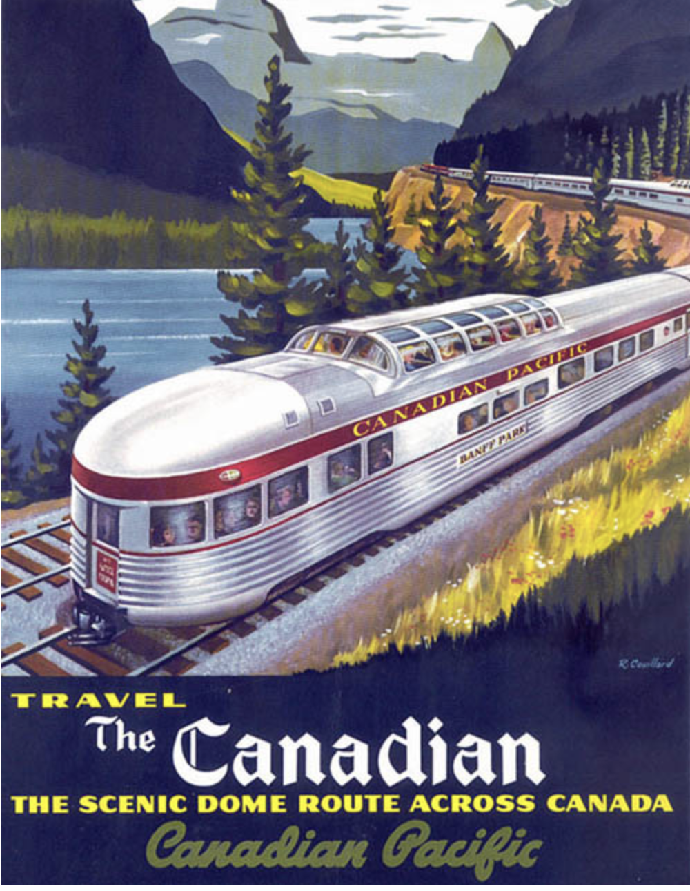 It was originally printed in 1980, by Sudbury, Ontario publisher Nickel Belt; clearly not an attempt to hit the bestseller lists, but a labour of love. A book like this is catnip for railfans, as worshippers of the iron road are known: there is page after page of black-and-white photos of tourist sleeping cars, stainless steel consists, wooden parlor cars, and RDCs (rail-diesel cars, self-propelled passenger cars that ran on many smaller lines), all diligently identified by manufacturer, line, and train number. The core of the book, though, is a reprint of the Canadian Pacific Railway's (CPR) brochure for 1955, complete with maps and timetables for services from Yarmouth, Nova Scotia, to Victoria, British Columbia.